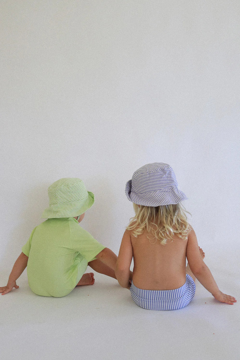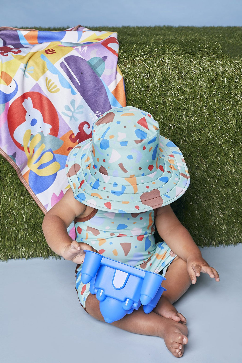Kids Wide Brim Bucket Hat Ocean Glass Green & Brown